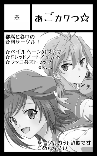 前回は一応私のところに委託、という形式だったのでサークル名義も私だったのですが、今回は合同にしようということでサークル名がキチガイじみてます(○>ヮ・)つ-☆。+ * 。・。* +